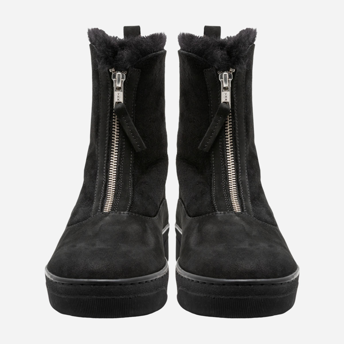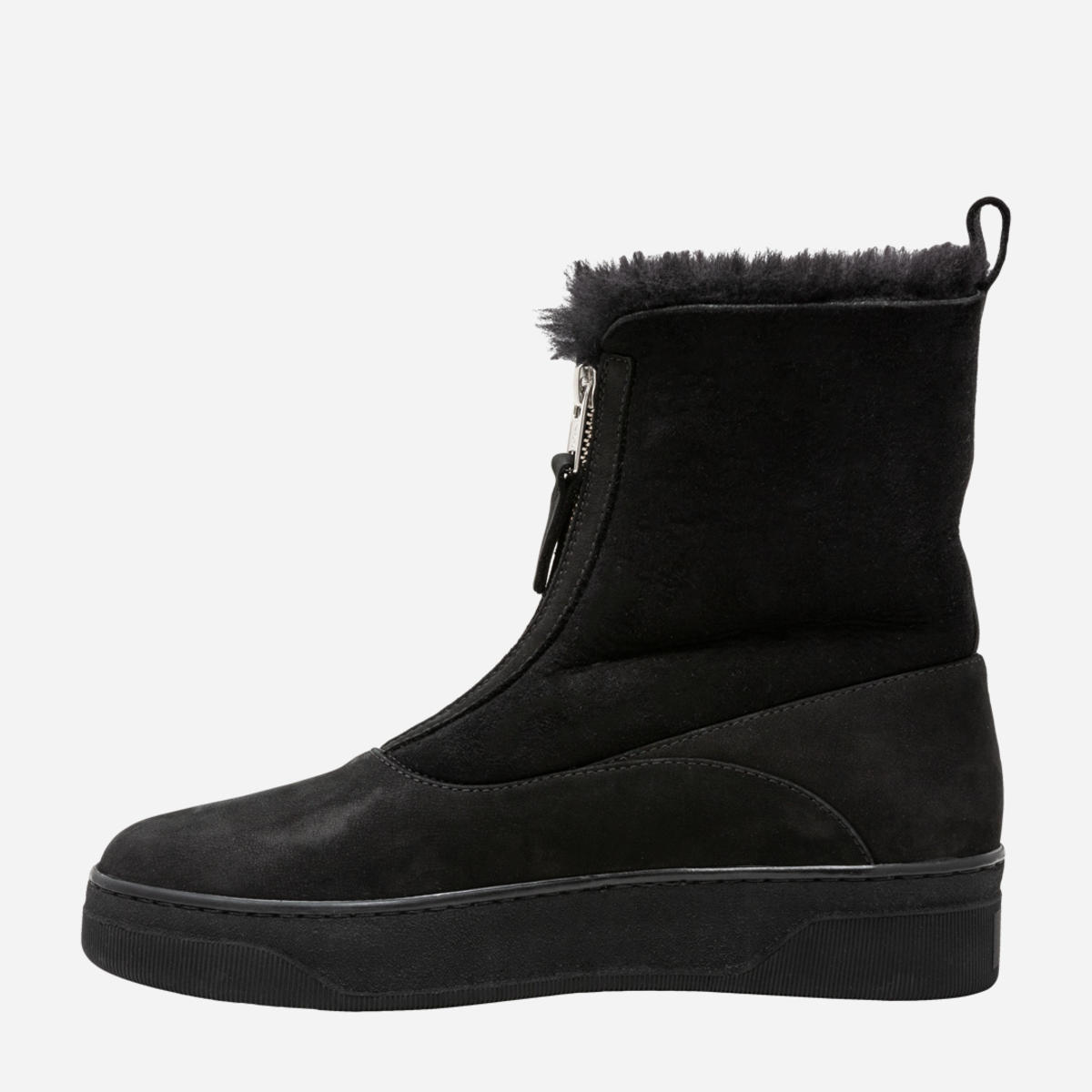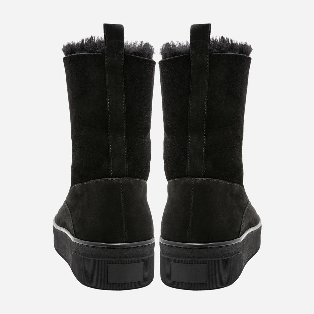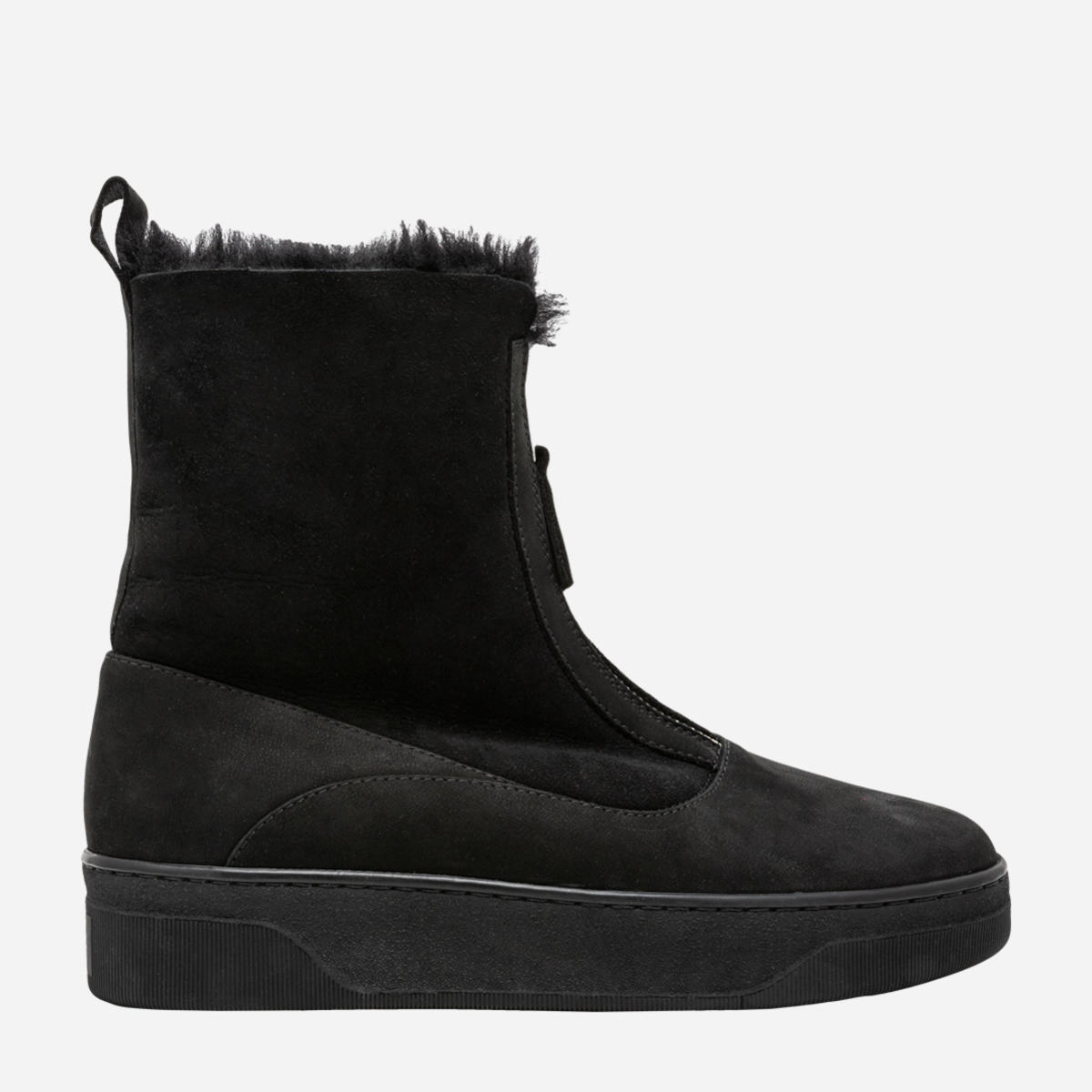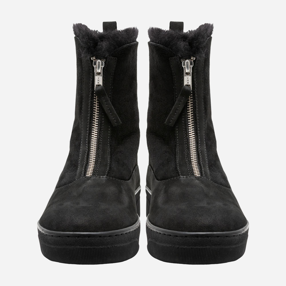 Ботинки женские из комбинации нубука и дубленки черного цвета. Высота голенища 15,5 см. Молния спереди делает модель оригинальной и комфортной при обувании. На ноге смотрятся очень аккуратно. Высота подошвы 3,5 см Такие ботинки согреют ноги даже в самую холодную и сырую погоду. Размерная сетка по длине стельки: 36 р -23,2 см, 37 р — 23,5 см, 38 р — 24,5 см, 39 р — 25 см, 40 р -25,7 см.