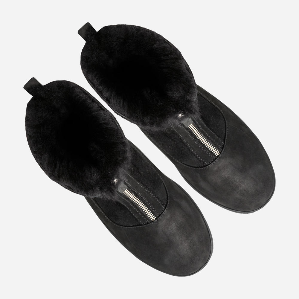 Ботинки женские из комбинации нубука и дубленки черного цвета. Высота голенища 15,5 см. Молния спереди делает модель оригинальной и комфортной при обувании. На ноге смотрятся очень аккуратно. Высота подошвы 3,5 см Такие ботинки согреют ноги даже в самую холодную и сырую погоду. Размерная сетка по длине стельки: 36 р -23,2 см, 37 р — 23,5 см, 38 р — 24,5 см, 39 р — 25 см, 40 р -25,7 см.