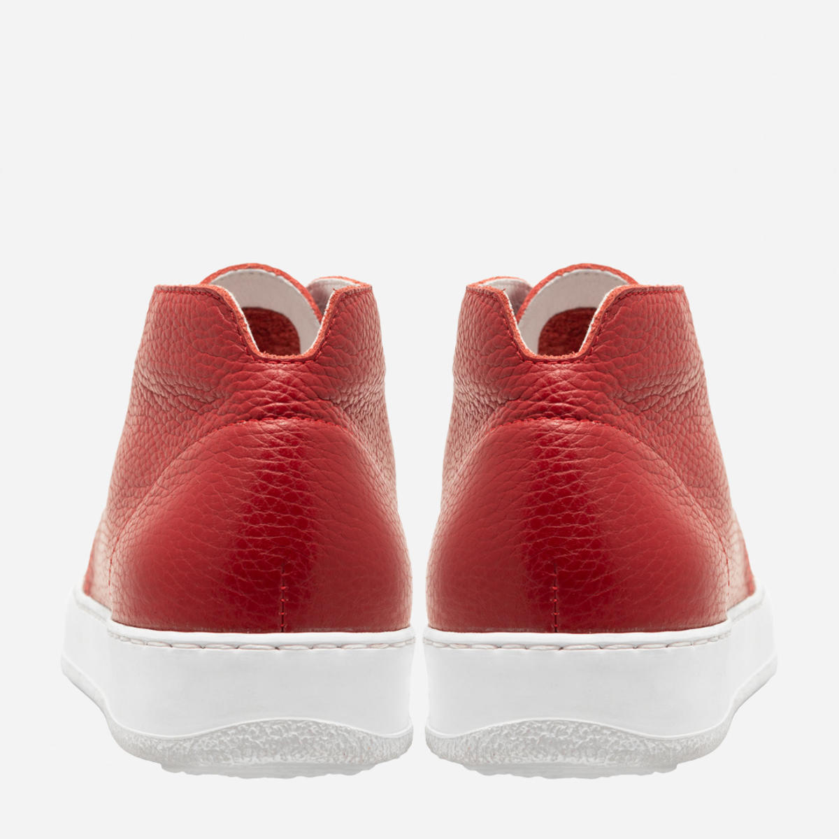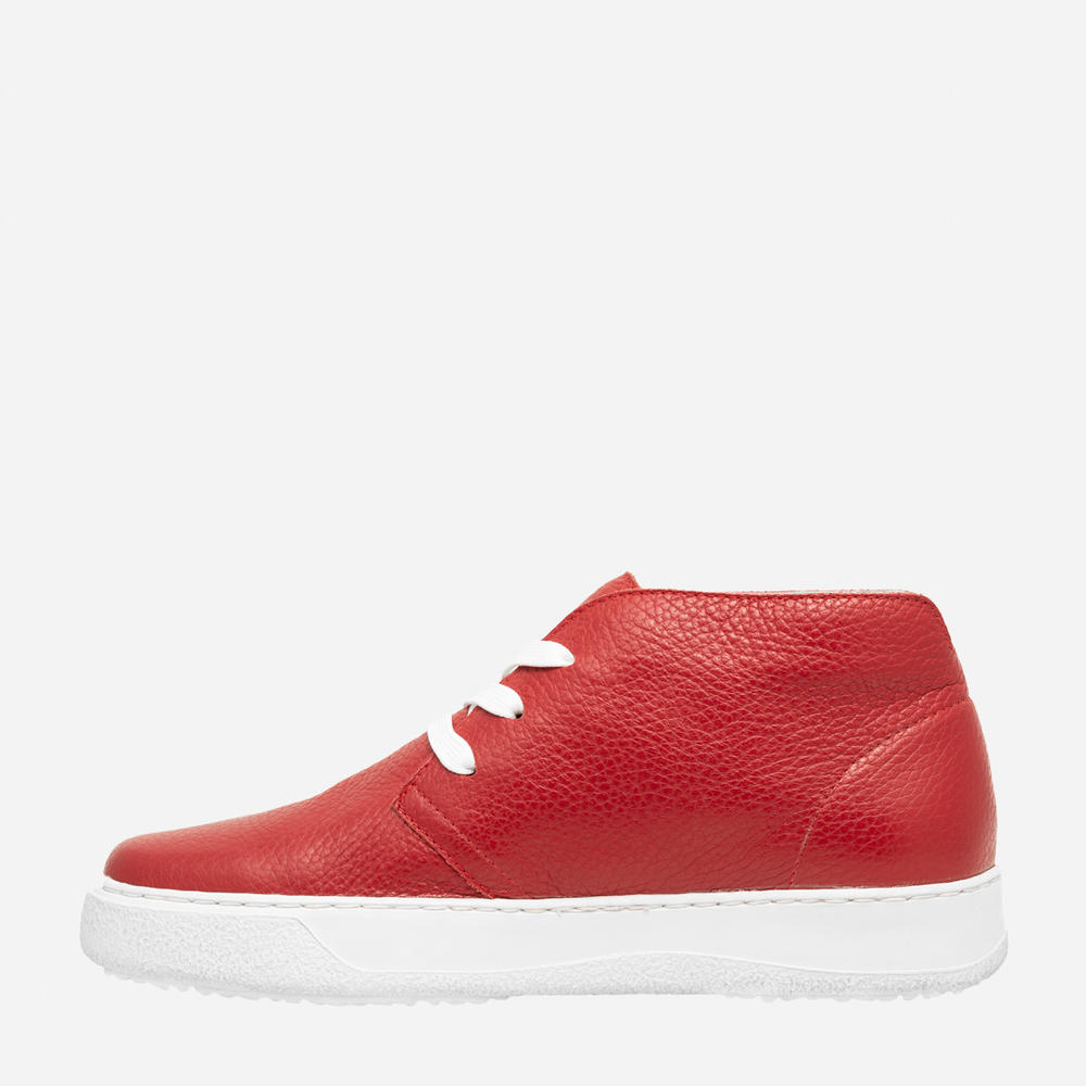 Низкие ботинки, до середины косточки, из мягкой кожи — флотар, красного цвета, без подкладки, не утепленные, на белой спортивной бодошве высотой 2,5 см. Носочная часть имеет закругленную форму. Мягкая вкладная кожаная стелька на силиконовой основе. Размерная сетка 35 р — 22,3 см, 36 р — 23 см, 37 р — 23,5 см, 38 р — 24 см, 39 р — 25 см, 40 р — 25,5 см, 41 р -26,5 см.